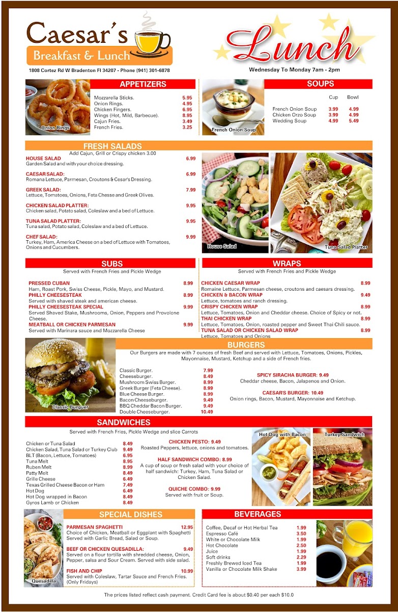 Welcome to Caesar's Breakfast & Lunch, a hidden gem located at 1808 Cortez Rd W, Bradenton, FL. This charming eatery offers an array of delicious options, perfect for fueling your day.